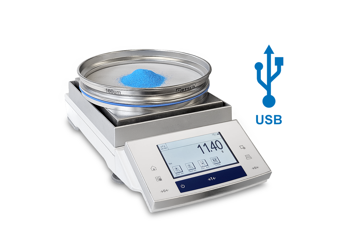 Ihr Vorteil im Laboralltag: fehlerfreies, zeitsparendes Wiegen und anschließendes Auswerten in einem einzigen Prozess, ohne lästigen Siebtransfer zwischen Maschine und Waage.